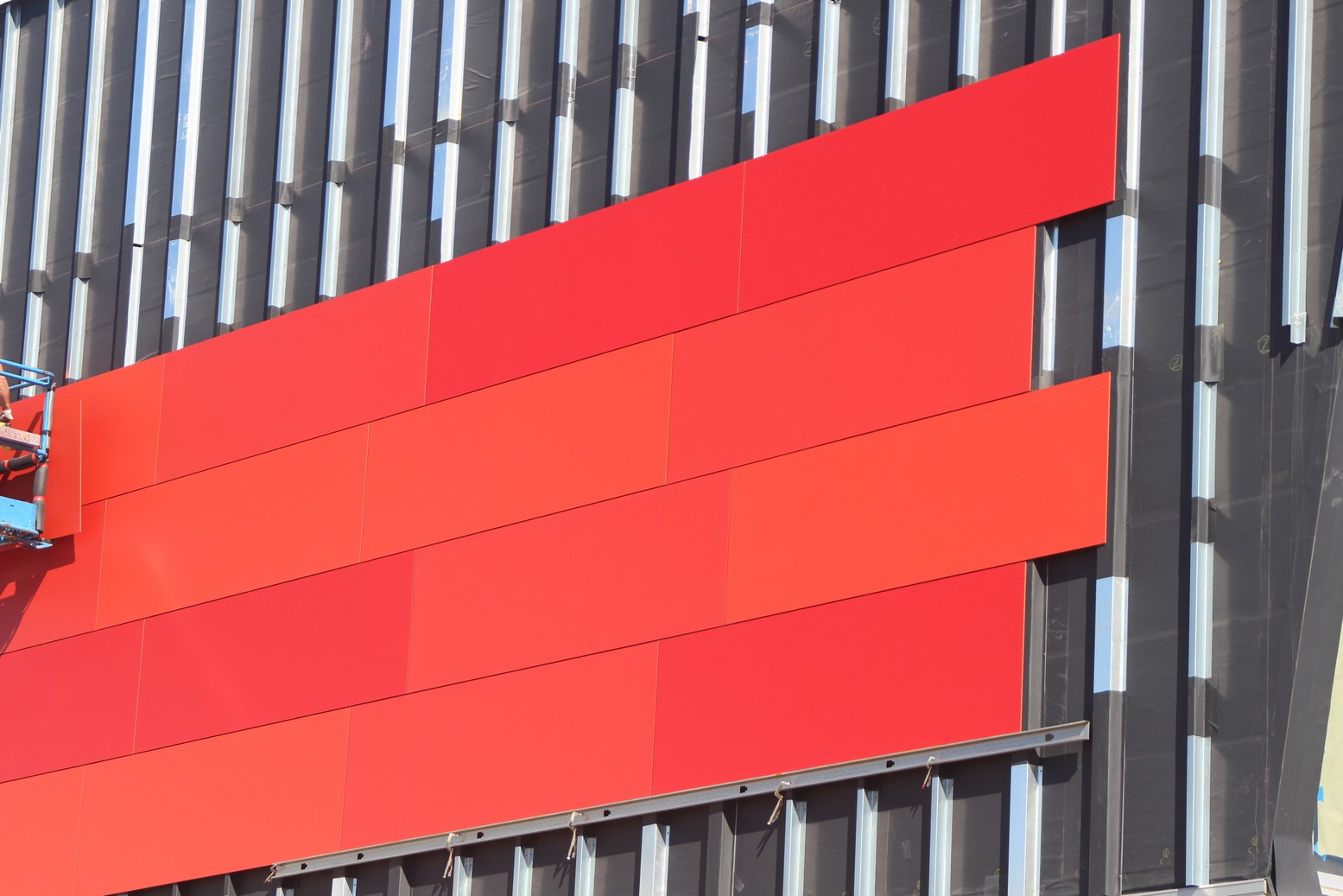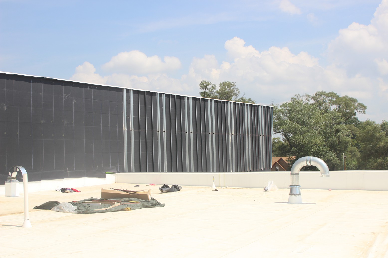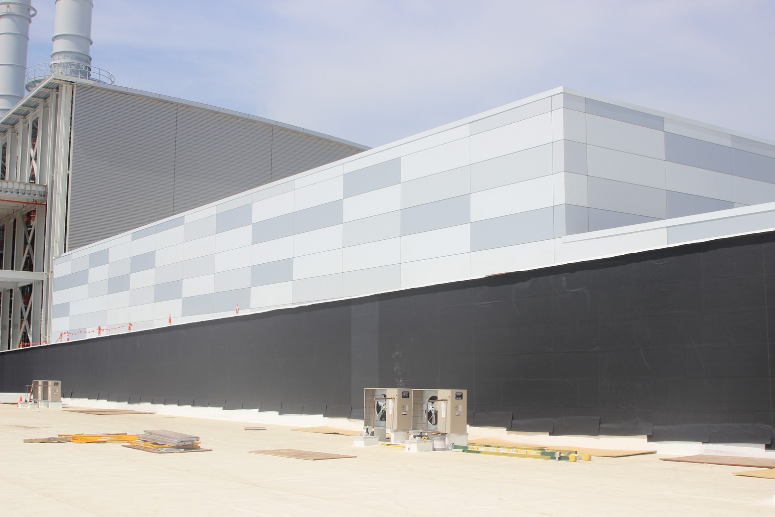 Over 10,000 sq.ft. of RevealShield SA Self-Adhered Water Resistive Vapor Permeable Air Barrier Sheet Membrane was installed over USG gypsum sheathing on the Holland Energy Park. Revealshield SA Self-Adhered is black, UV stable and creates the desired black reveal behind open-joint cladding.