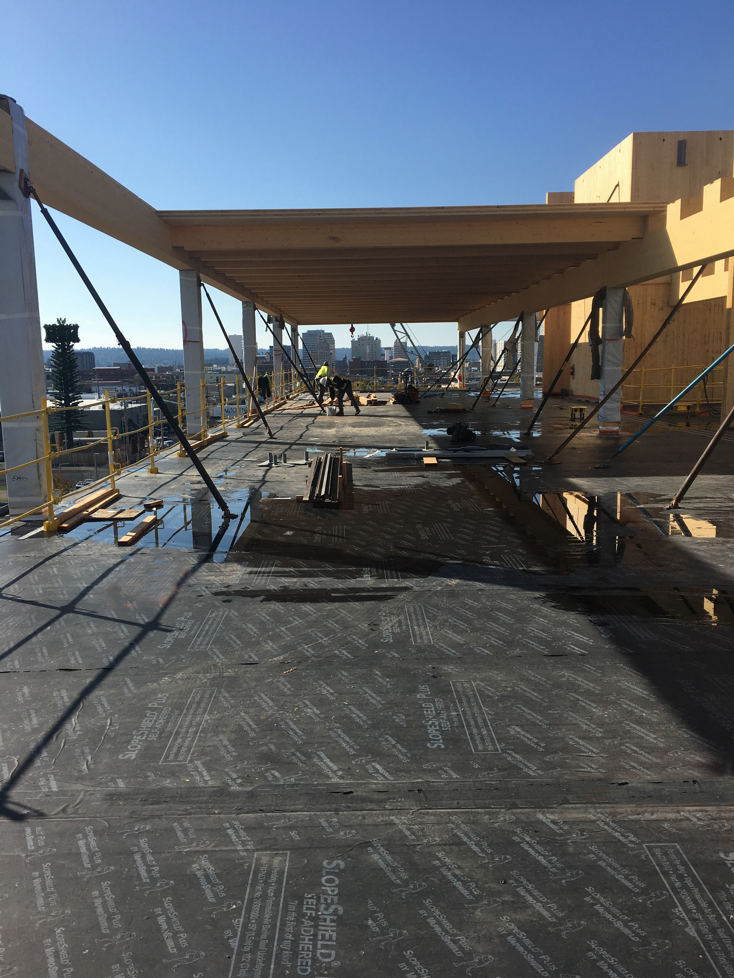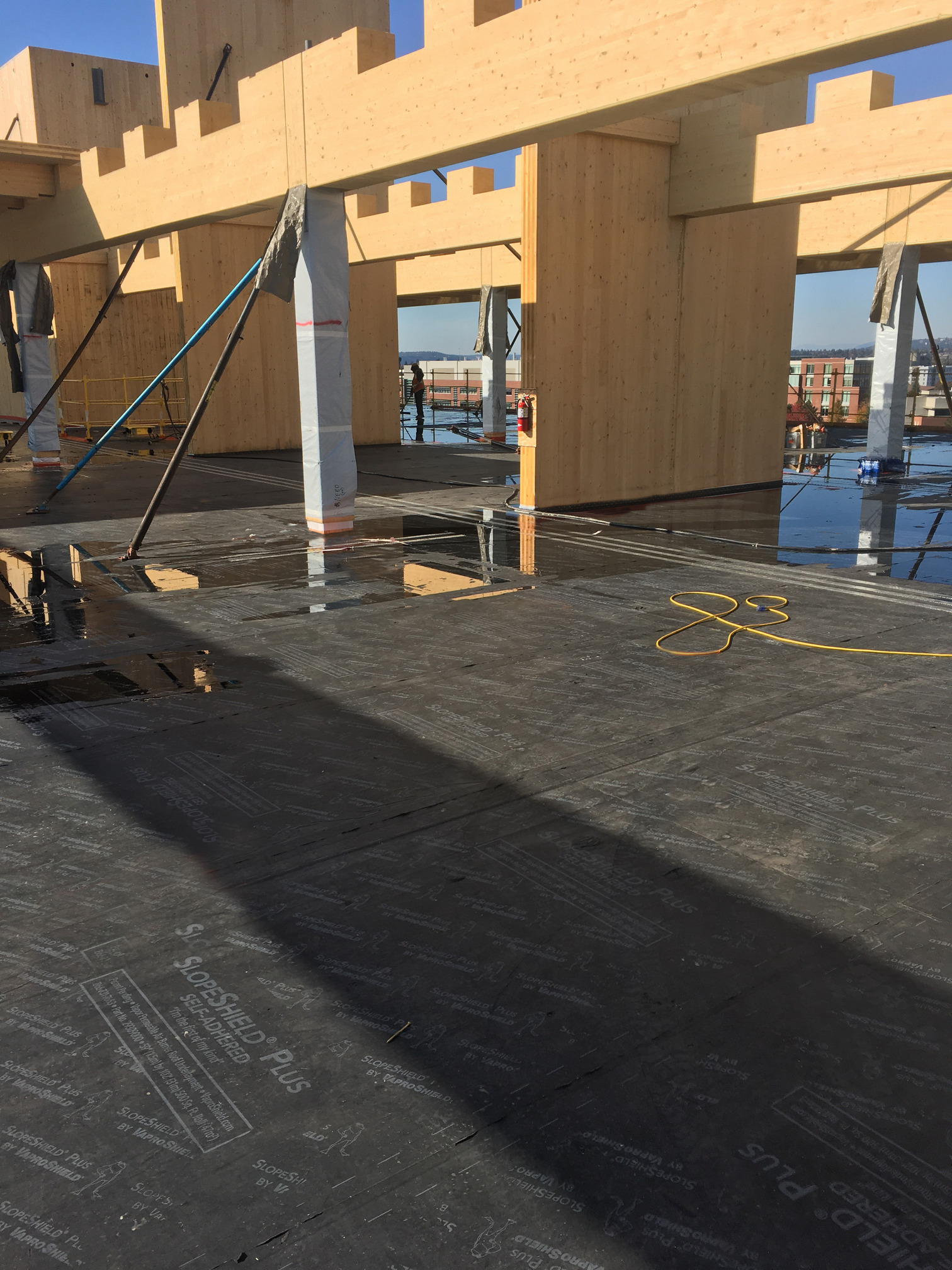 WrapShield SA Self-Adhered offers exceptionally high drying capacity, which will prove instrumental in drying out the moisture-laden CLT substrate over time.