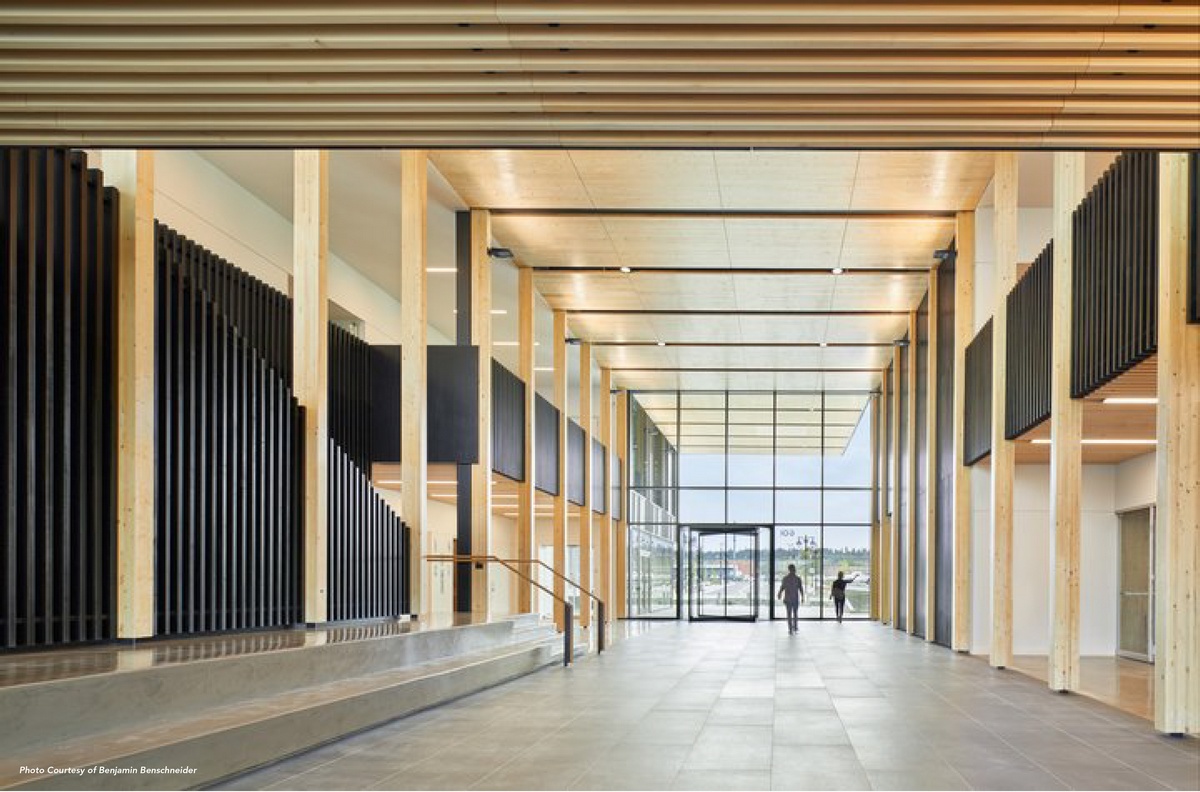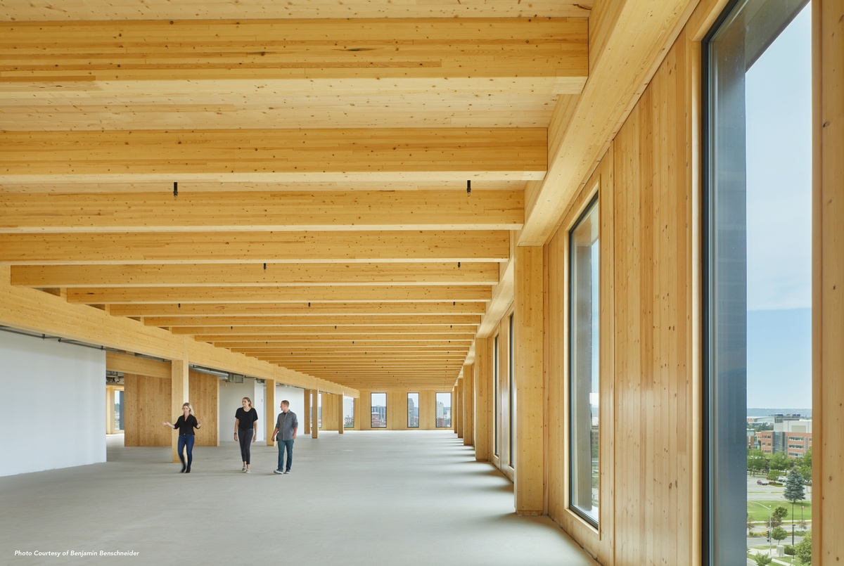CLT (cross-laminated timber), a popular eco-friendly substrate was used on the Catalyst. By minimizing the use of steel and concrete and instead relying on carbon-storing timber, the Catalyst’s structure offsets emissions of heat-trapping greenhouse gases. This is equivalent to taking 1,100 cars off the road for a year.