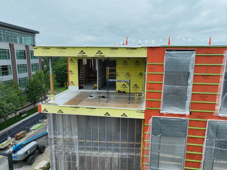 The Next Center, a 20,000 sq. ft. business incubator in Holland, MI, was designed to be a long-standing hub for the region's entrepreneurial community. The project utilized WrapShield SA Self-Adhered, a vapor-permeable air barrier membrane, to ensure top-tier performance in the building envelope throughout harsh Midwest winters on the lakeshore.